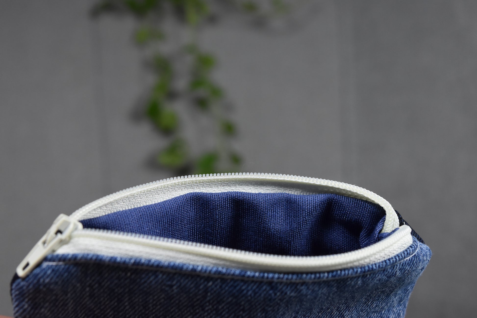La TINY est la plus petite pochette de notre boutique. Compacte et légère, elle présente deux faces en matières contrastées, tissus neufs et recyclés (de seconde main), ce qui lui donne son caractère unique.