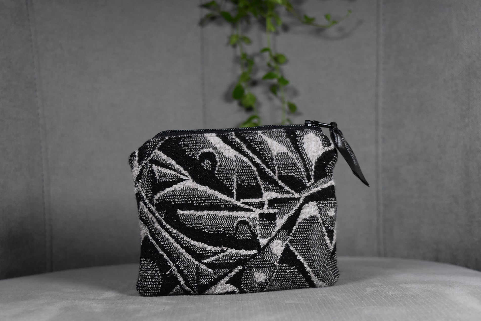 La TINY est la plus petite pochette de notre boutique. Compacte et légère, elle présente deux faces en matières contrastées, tissus neufs et recyclés (de seconde main), ce qui lui donne son caractère unique.