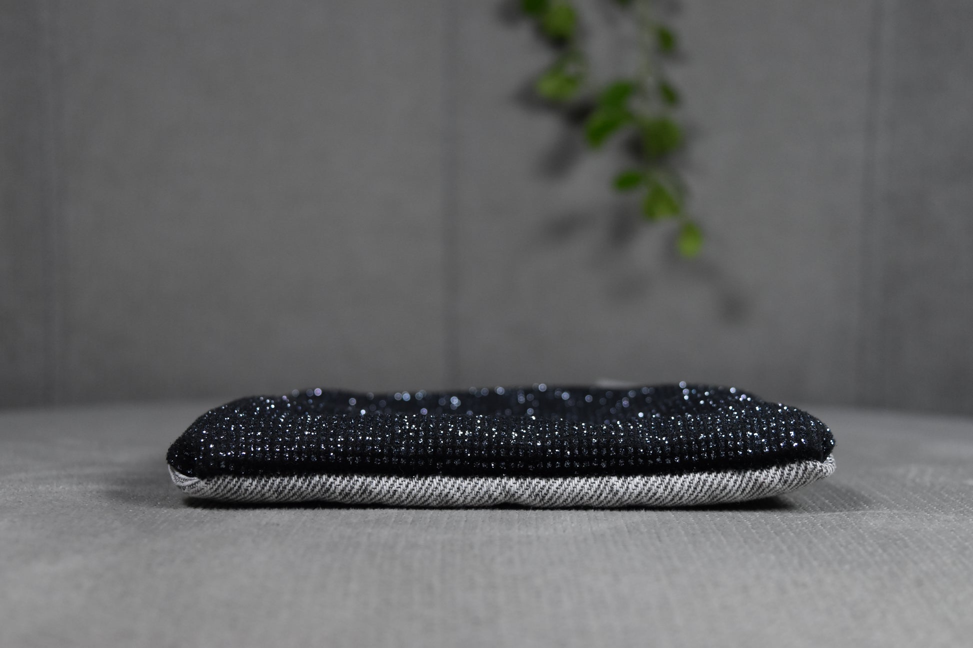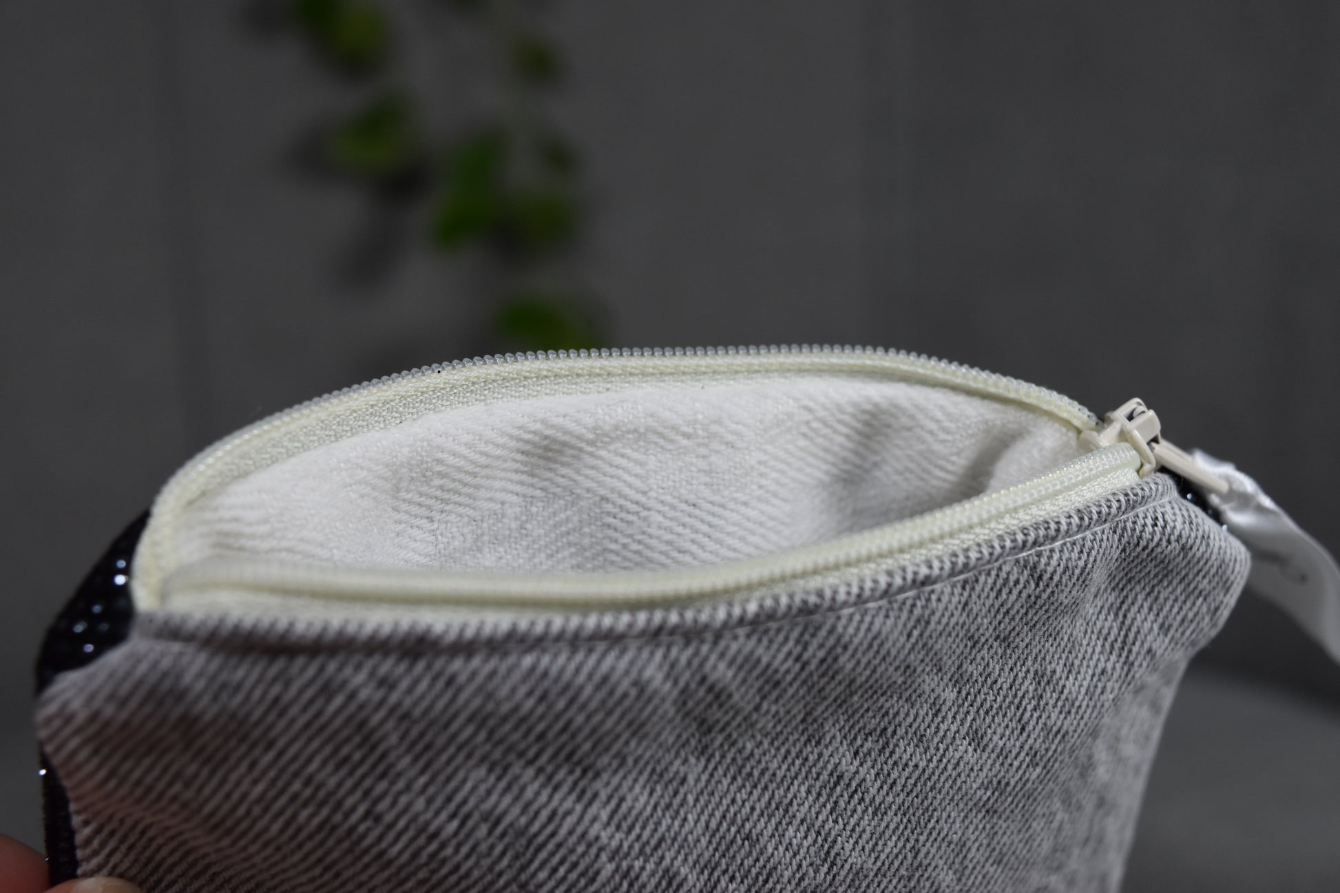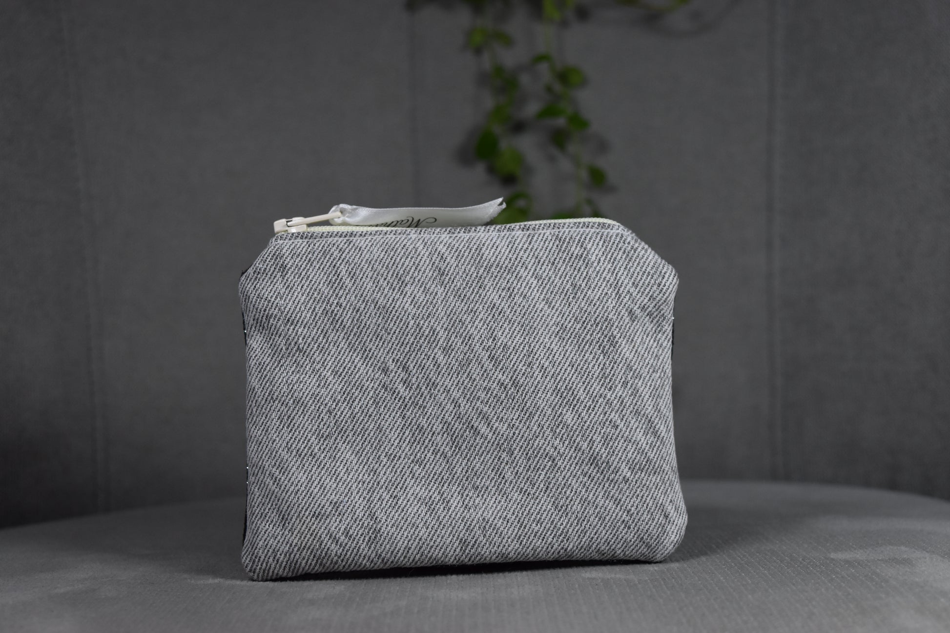 La TINY est la plus petite pochette de notre boutique. Compacte et légère, elle présente deux faces en matières contrastées, tissus neufs et recyclés (de seconde main), ce qui lui donne son caractère unique.